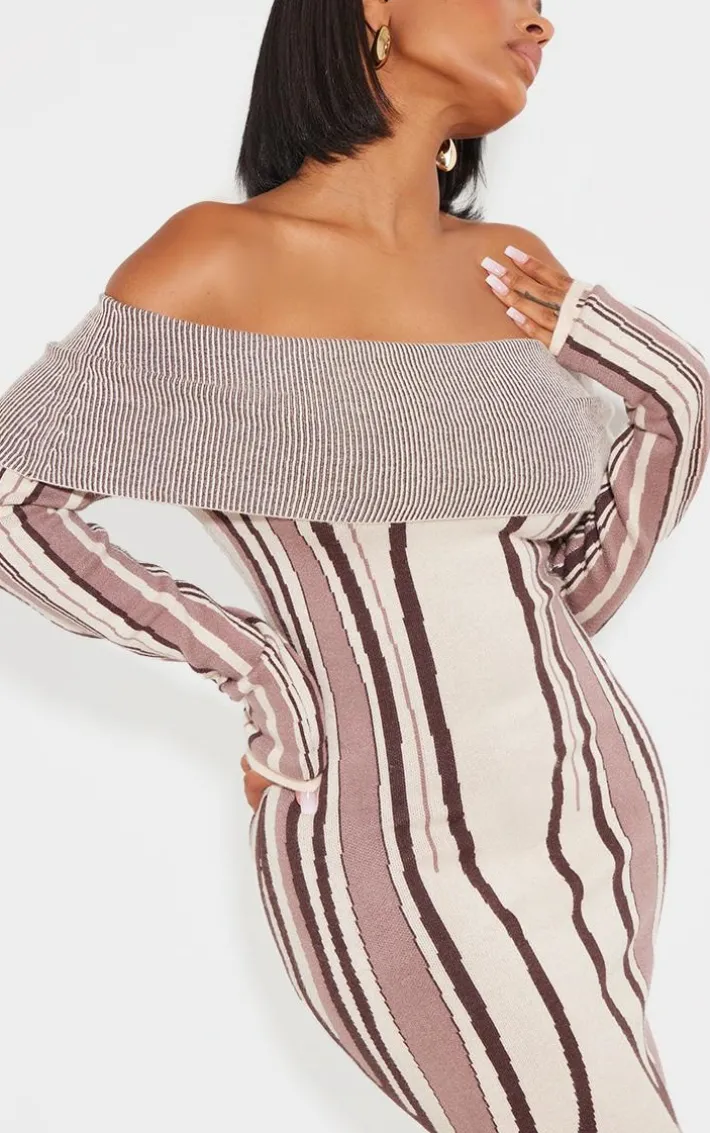 This shape stone knit abstract print bardot midaxi dress is here to solve all of your ‘what to wear’ dilemmas this weekend. Brought to you in a stone knit material with an abstract print design, a bardot neckline and a flattering midaxi length, how can you say no? Style this knit dress with heels and some gold accessories for a look that will have eyes on you wherever you go.
