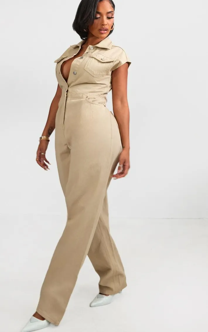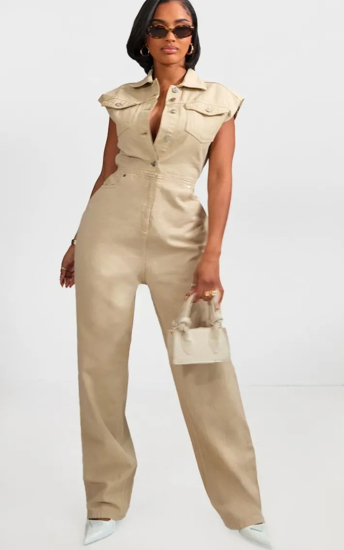 Be on trend this season with this shape stone sleeveless rigid denim jumpsuit. Brought to you in a stone denim material with a sleeveless design and button up detail, you will bring all the edge to your outfit of the day. This jumpsuit is perfect for those on the go days. Team with high heels and accessories to be the center of attention wherever you step foot this season.