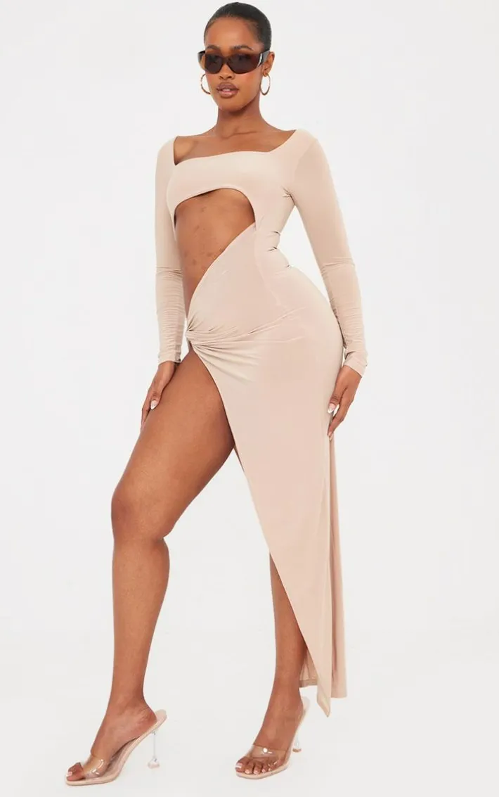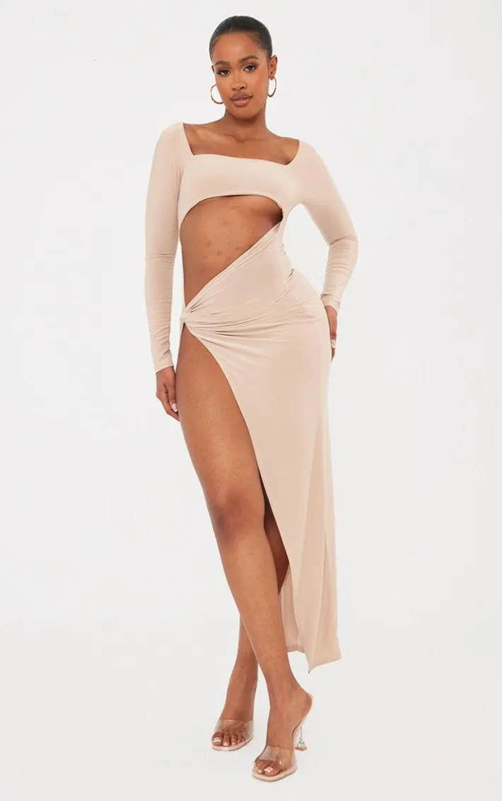 Got a date night in the diary that you want to impress? Then this shape stone slinky cut-out knot side midaxi dress is the answer to all your what-to-wear dilemmas. Brought to you in a stone slinky material with a cut-out design, knot side details, and a split hem, how could you say no? This shape midaxi dress is sure to take everyone’s breathe away and we know you won’t be able to resist the attention you are bound to get. Team with clear heels and gold accessories for a dreamy finish that won’t go unnoticed.