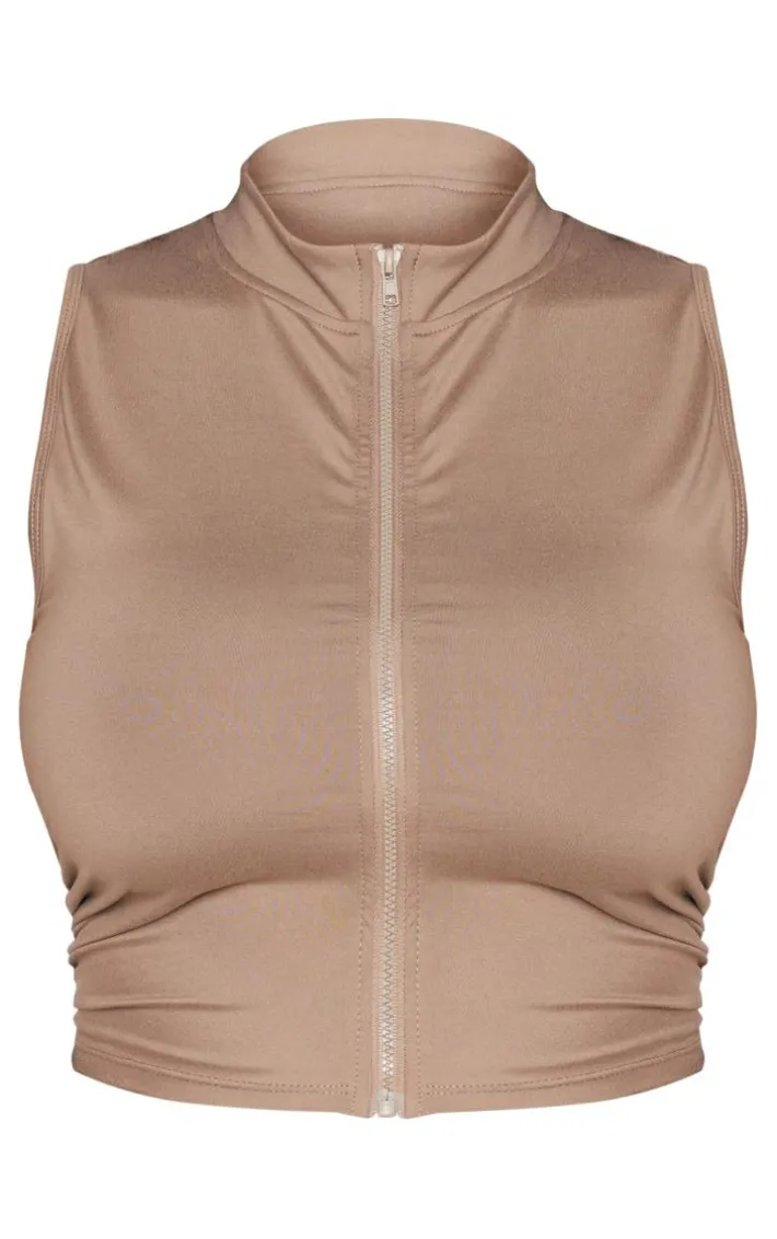 Add some neutral hues to your outfit with this shape taupe soft seamless zip front sleeveless top. Perfect for dressing up or down, this shape top is a must-have for the new season and beyond. Made from a taupe hue soft seamless material with a sleeveless design and a zip up fastening, what’s not to love? Style this top with denim shorts and heels for a fierce weekend-worthy look like no other.