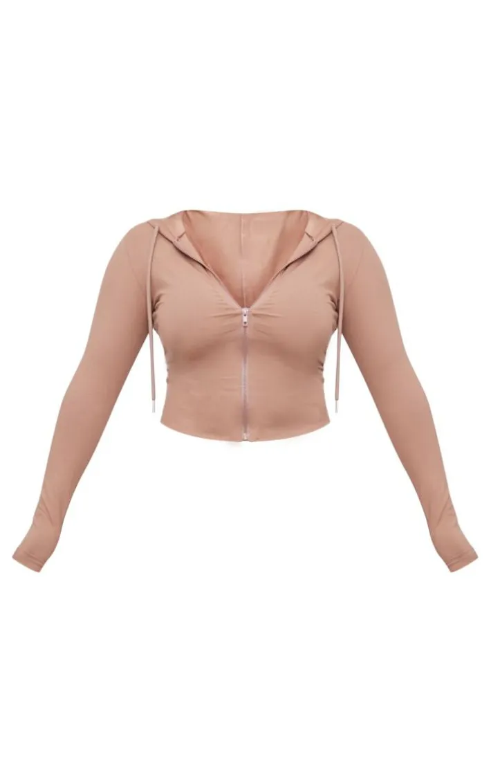 Add some drama into your off-duty wardrobe with this shape taupe soft seamless zip through hoodie. Brought to you in a taupe soft seamless material that will have you feeling feminine, we are seriously obsessed. With a zip through design, you’re sure to have all eyes on you. To complete the look style this hoodie with some comfy sneakers, the matching top and gold hoops for an everyday look we just can’t get enough of.