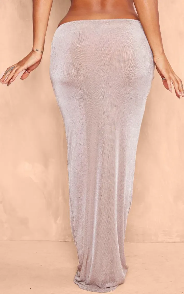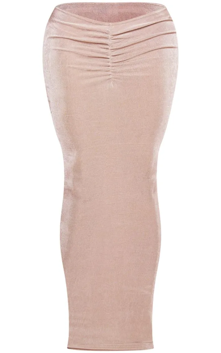 This shape taupe slinky acetate low rise ruched front maxi skirt is here to banish any of your what to wear dilemmas. Brought to you in a taupe slinky acetate material with a low rise design and a ruched front detail, we canÂ’t get enough. From start to finish this maxi skirt will have you looking totally on-trend. For a next-level look simply style with the matching top, your fave accessories and a pair of heels. ItÂ’s a yes from us.