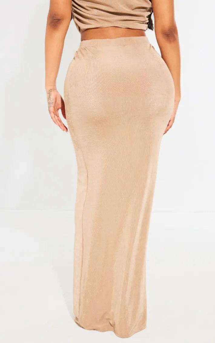 Show off your shape in all the right places with this shape taupe slinky acetate ruched detail maxi skirt. Brought to you in a taupe slinky acetate material with a ruched detail giving you a flattering fit that will show off your shape in all the right places. Team this unreal maxi skirt with the matching top and a pair of heels for an Insta worthy finish.