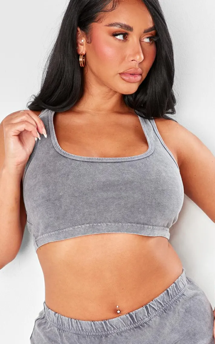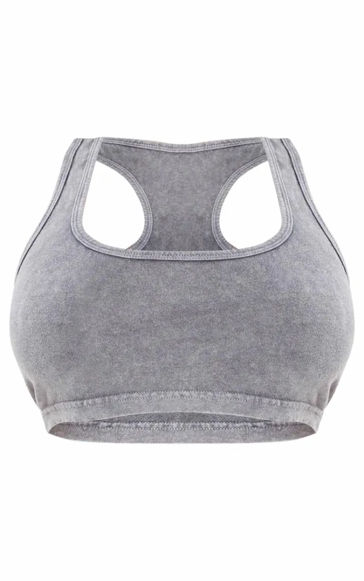 Amp up your wardrobe with this shape washed grey racer back crop top. Brought to you in a washed grey material with a racer back detail, this crop top is a must have. Style with the matching skirt, black heels and grey shoulder bag for a combo we’re crushing on this season.