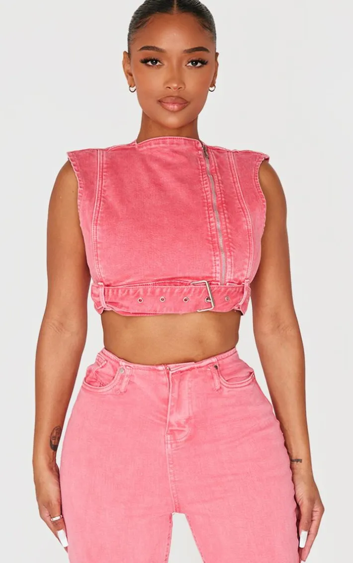 Keep it chic with this shape washed red denim cropped zip detail sleeveless jacket. Brought to you in a washed red denim material with a cropped length and a zip detail, we just can’t get enough. Team this sleeveless jacket with the matching bottoms, your go-to accessories and heels for a look that will turn heads no matter what.