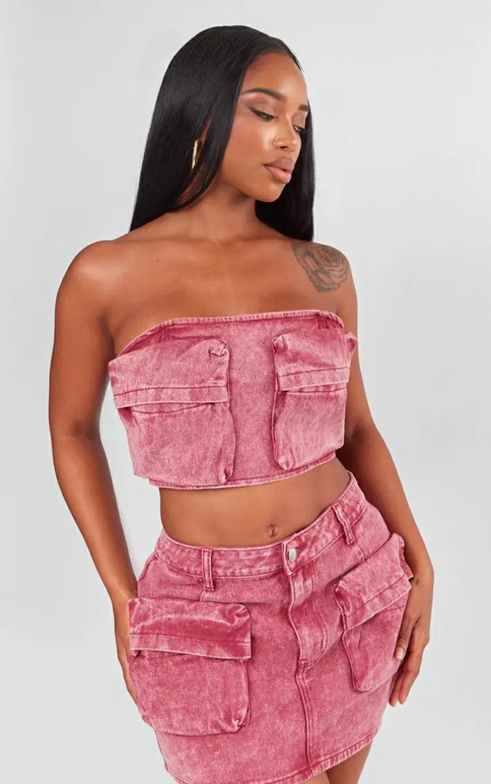 Say hello to your new season staple with this shape washed red denim pocket mini skirt. Brought to you in a washed red denim material with a pocket detail and a mini length, what more could you want? This mini skirt will be showing off your shape in all the right places. What more could you want ? Style with some the matching top and a pair of clear heels for a look that have you being the topic of everyone’s conversation.