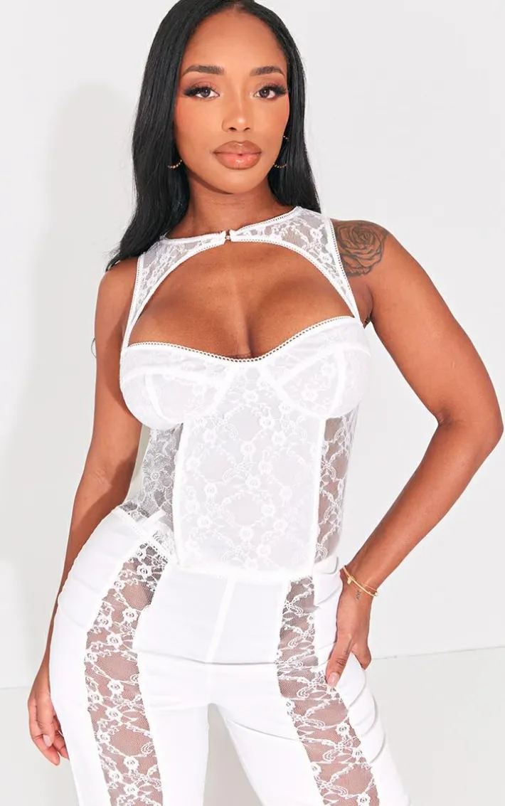When the weekend calls, so does this shape white lace cut out corset. Brought to you in a white lace material with a cut out detail and a corset design, giving you a flattering fit like no other. Team this dreamy corset with the matching pants and your fave heels to complete the look we just can’t get enough of.