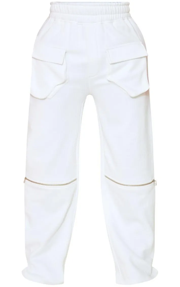 Level up your off-duty wardrobe with these shape white sweat utility zip front wide leg sweatpants. These sweatpants are brought to you in a white material with a zip front and a wide leg fit, how could you say no? Whether it’s a chilled day at home or you’re running your everyday errands these sweatpantsare the one for you. Level up the look and add the matching bandeau, box-fresh kicks and your everyday essentials for the ultimate combo.