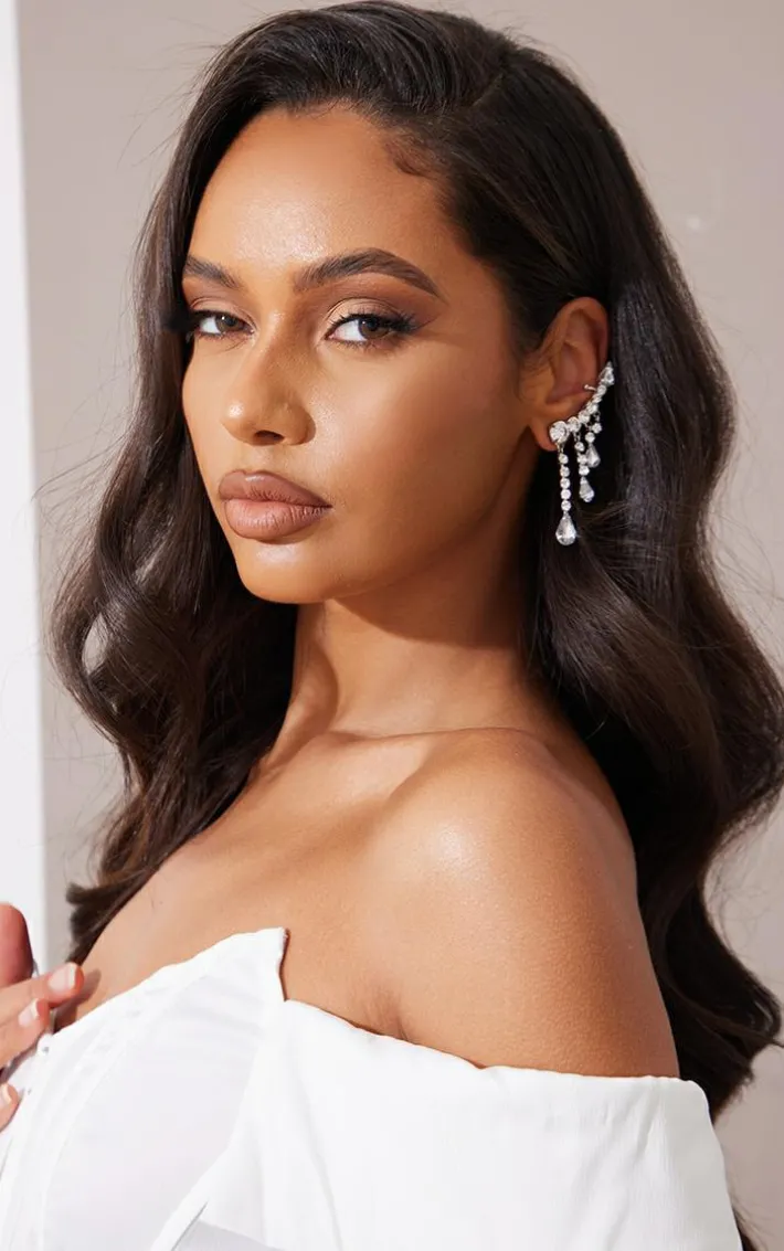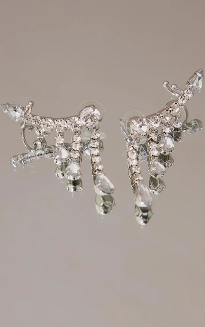 Get ready to make a statement in these seriously glam earrings. Featuring a silver diamante material with a drop ear climber design, we’re in love. Just add to your weekend fit to instantly elevate the look.