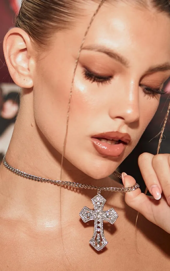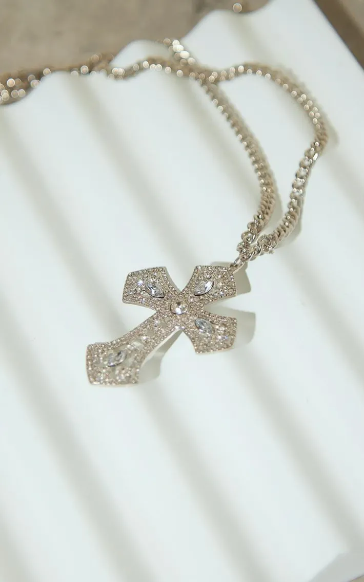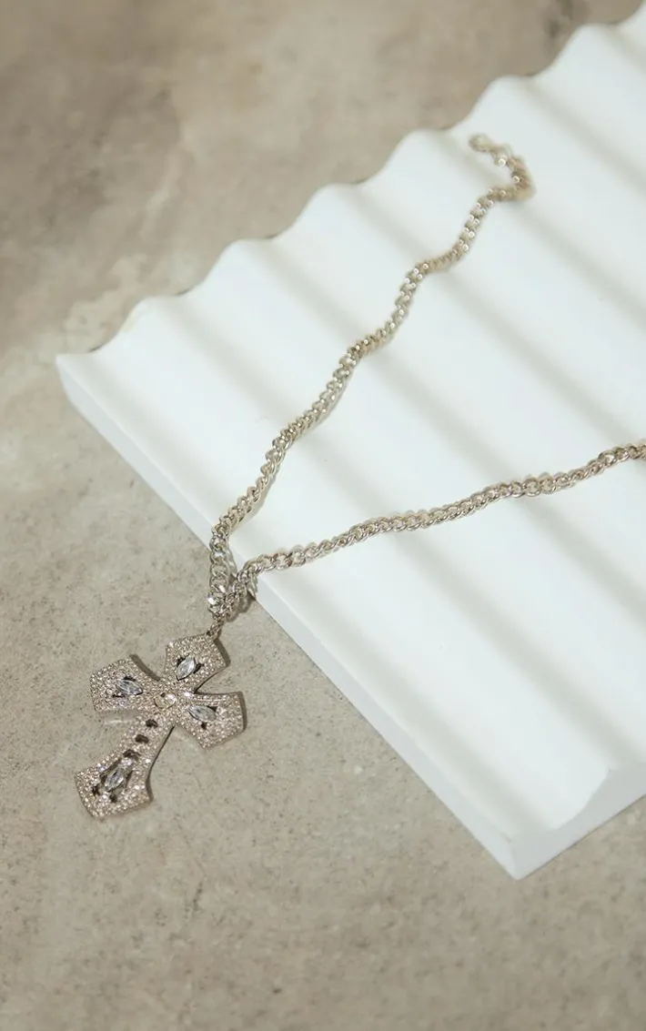 Inject some effortlessly edgy vibes to your look with this silver large diamante cross necklace. Made from a silver hue material with diamante detail and a large cross design, how could you say no? This necklace is the ultimate finishing touch to your outfit of the day and we know you won’t be able to resist adding these fresh feels to your look.