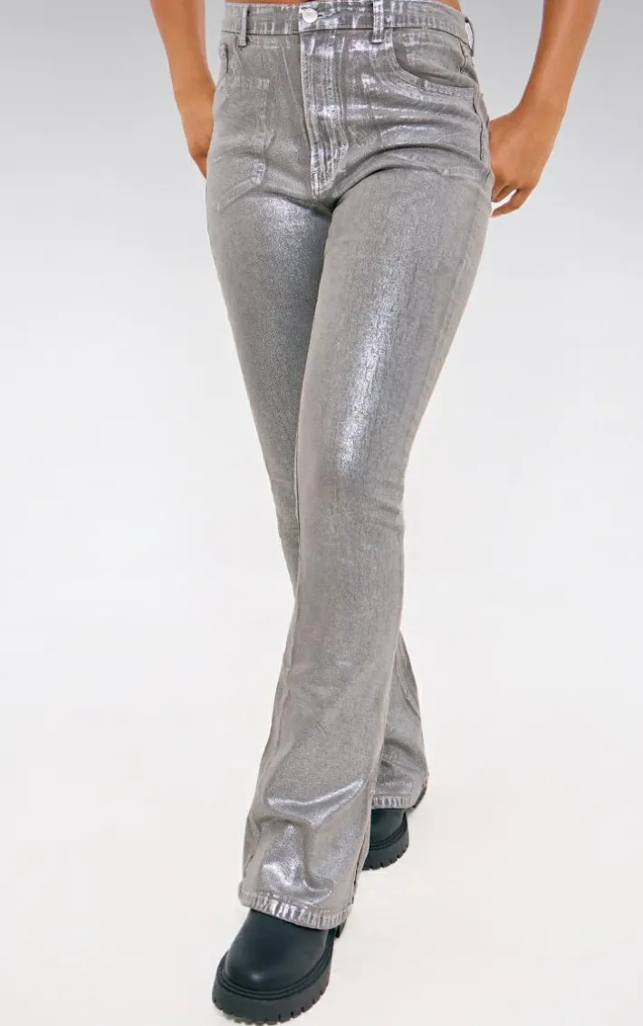 You won’t blend into a crowd with these silver metallic foil effect flared jeans. This silver metallic shade will have you reaching for these every weekend an beyond, and the foil effect detail has us obsessed. If you’re after a new figure-flattering addition, these flared jeans are calling your name. Style with the matching top, black boots and a shoulder bag for a look we’re in love with.