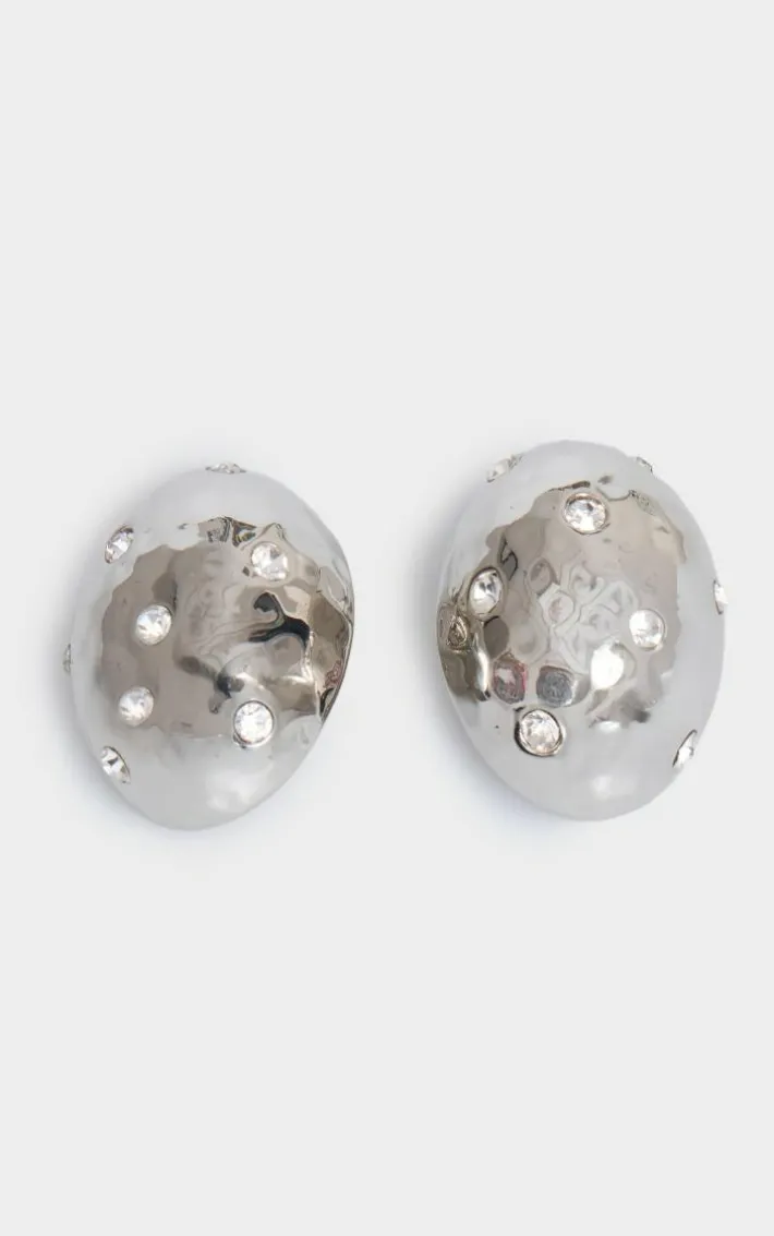 Take your look to new heights with these silver molten diamante pebble statement earrings. Brought to you in a silver hue material with a molten pebble design and diamante detail, these statement earrings are all the new you need. Style with a chic look for an elevated finish that won’t go unnoticed.