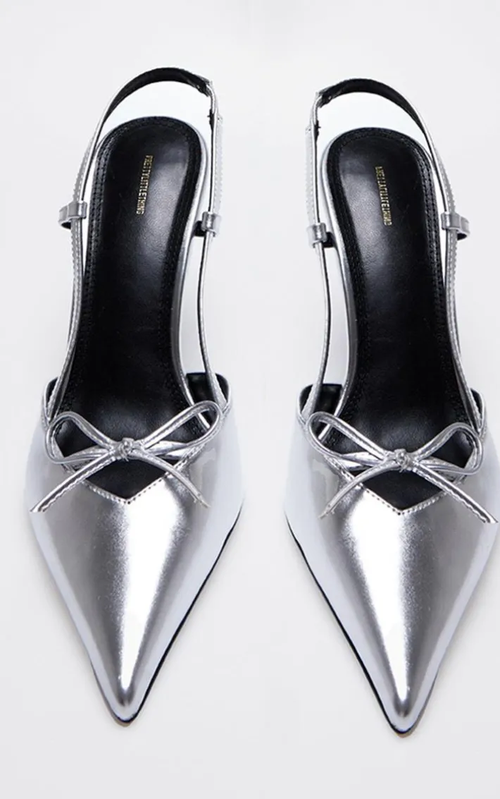 Bring all the chic vibes with these silver PU patent point toe bow detail mid heel courts. Brought to you in a silver PU patent material with a point toe and a bow detail that is sure to bring all the edge to your look. These mid heel courts are sure to elevate your look instantly. Style with your fave look to turn heads this season and beyond.