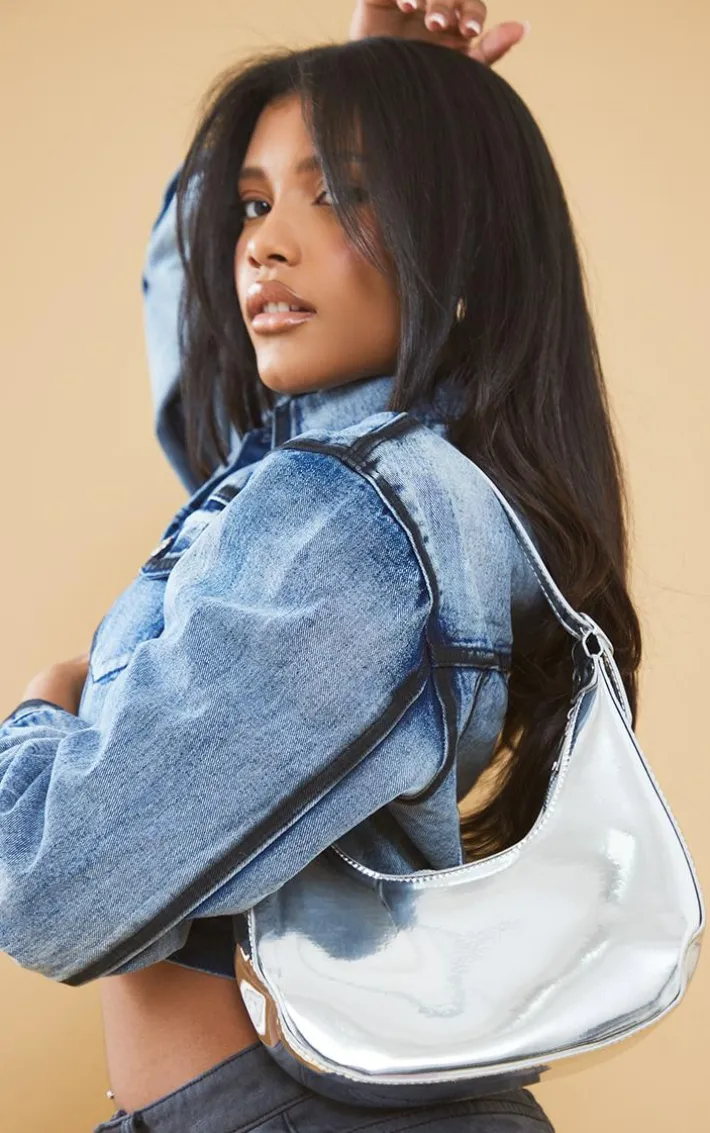 Add all the luxe vibes to your look with this silver PU shoulder bag. Its silver PU material is sure to give you that glam finish that your outfit of the day was missing. This shoulder bag also features a zip fastening and a single strap handle. Its a yes from us.