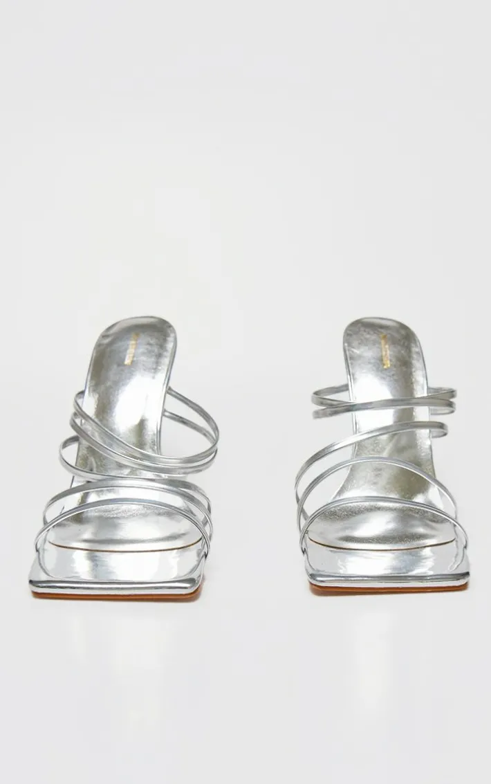 Bring a subtle touch of luxe to your weekend ‘fit with these silver PU square toe multi cross strap detail mid heeled mules. Made from a silver hue PU material with a square toe design, multi cross strap detailing and mid heels, how can you not be obsessed? These heeled mules are sure to take any weekend look to a whole new level. Style seamlessly with your wardrobe pieces for the perfect finishing touch.