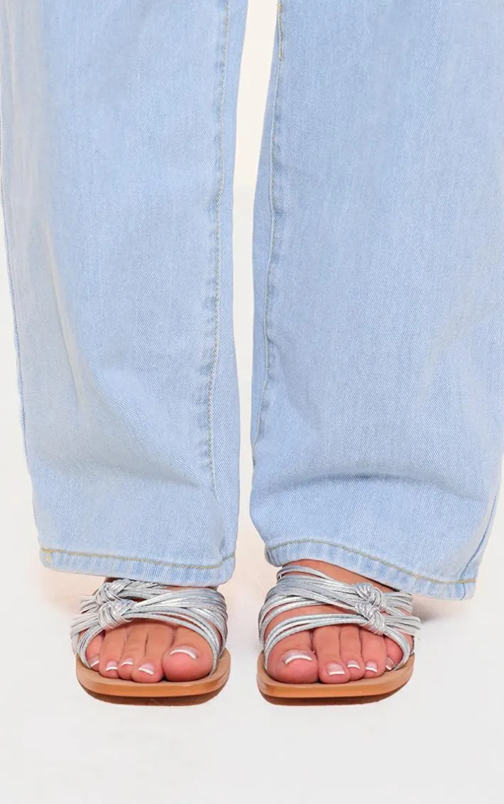 Bring some luxe vibes to your shoe collection with these silver real leather square toe knotted strap flat sandals. Made from a silver hue real leather material with a square toe design and knotted strap detailing, what more could you want? Just add these flat sandals to your outfit of the day to instantly elevate your look.