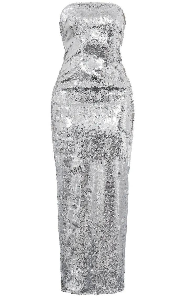 We have got your weekend ‘fit covered with this so stop scrolling and add this silver sequin bandeau maxi dress to your basket. Brought to you in a silver sequin material with a bandeau design and a maxi length, what more could you ask for? This is at the top of our hitlist this season and is sure to impress. Simply team with your fave heels, silver accessories and mini bag to nail all the major trends.