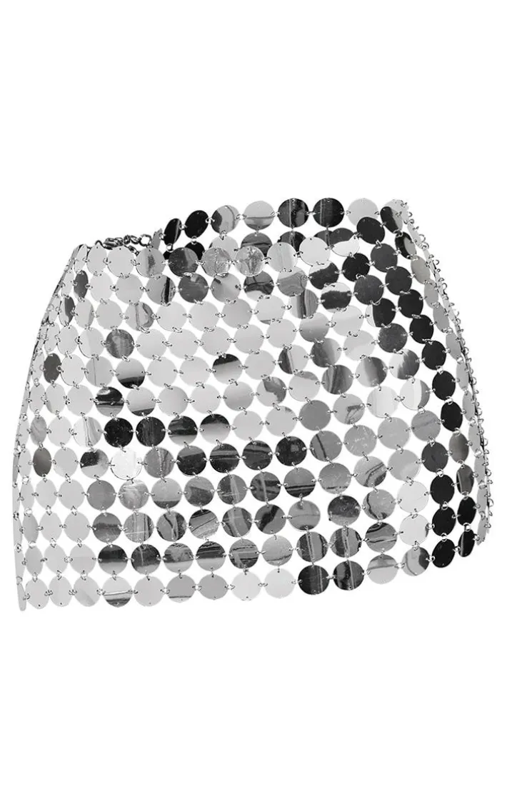 Channel all the fierce vibes into your new season wardrobe with this silver sequin body chain skirt, you’re sure to be at the center of attention in this statement piece. It is made using a silver hue material with sequin detailing and a chain style, how could you resist? Team this chain skirt with your fave outfit of the day for a look that is perfect for showing off your confident side.
