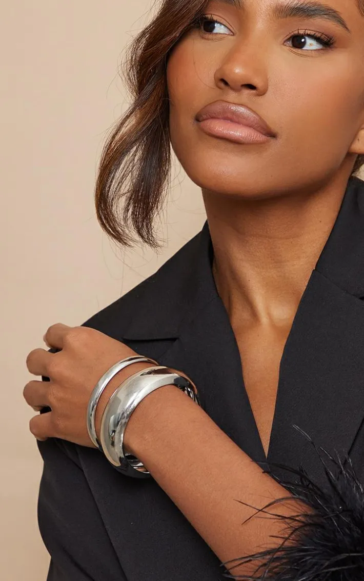 Amp up your outfit of the day with these bangles. Featuring a pack of two bangles both in a silver hue material with a simple design, we’re obsessed. Just ad to your fave new season fit for an effortlessly chic finish.