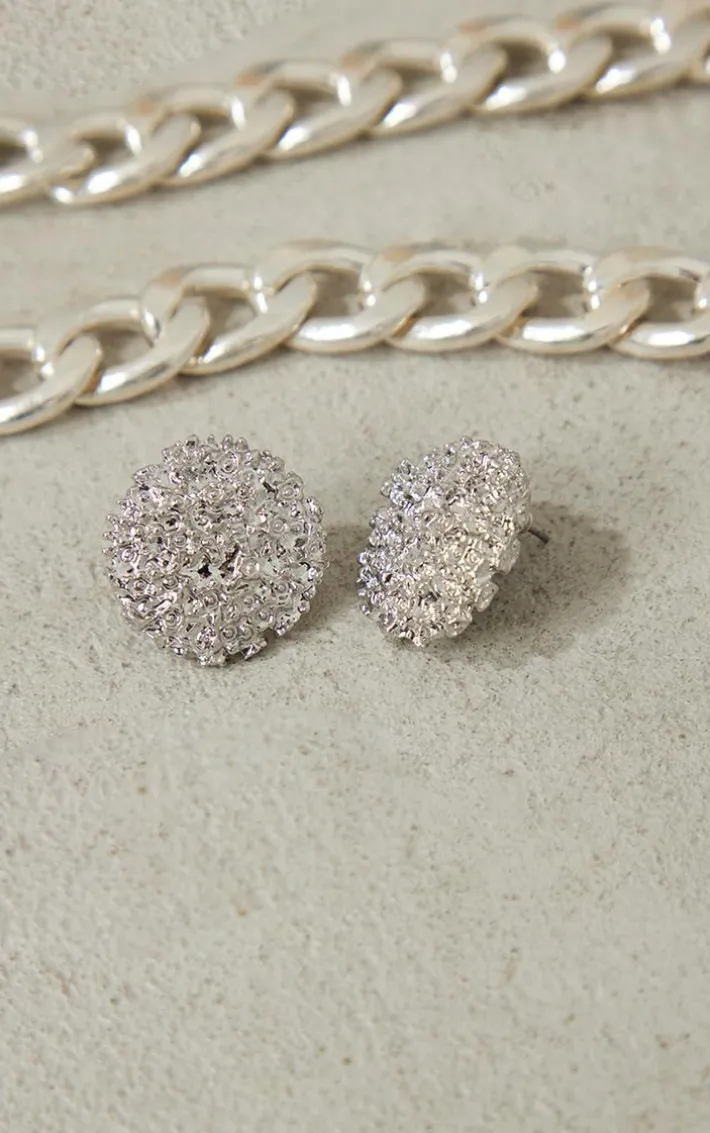 These studs are perfect for any occasion. Featuring silver studs in a circle shape with a textured design, we are obsessed. They’re a must in your accessories collection.