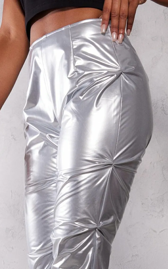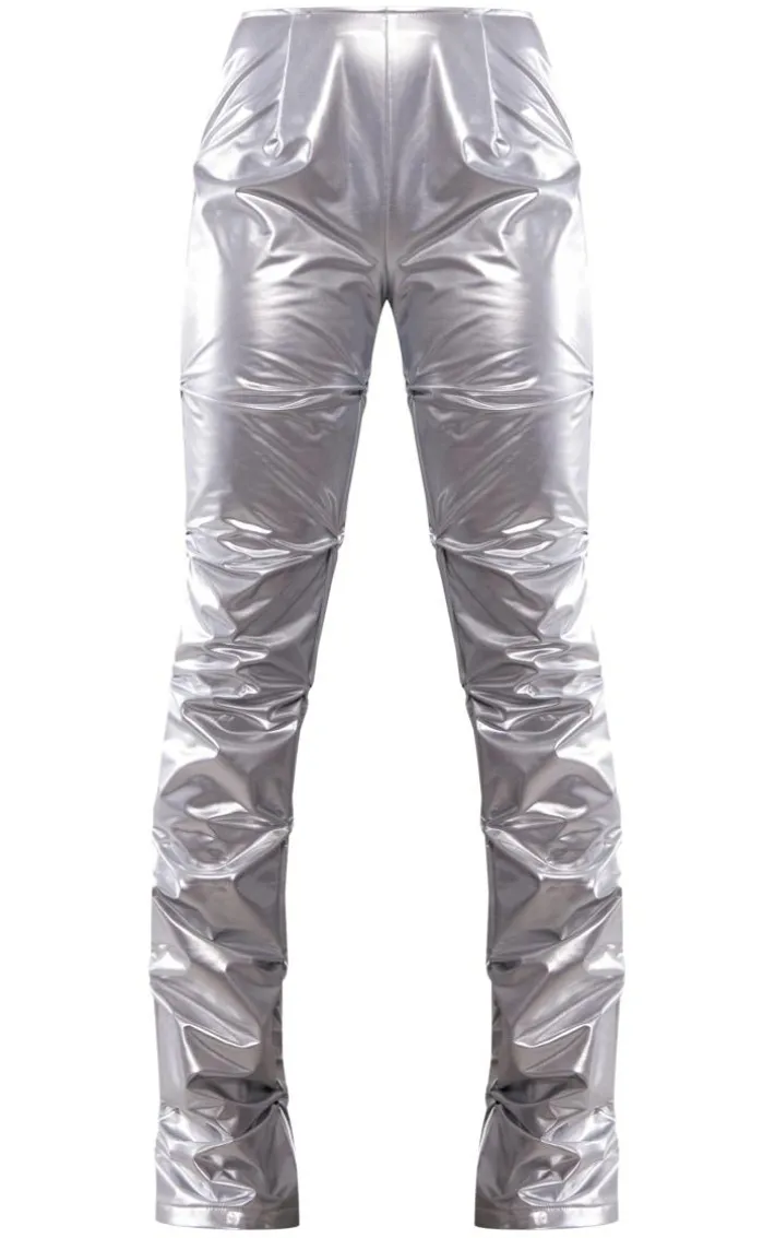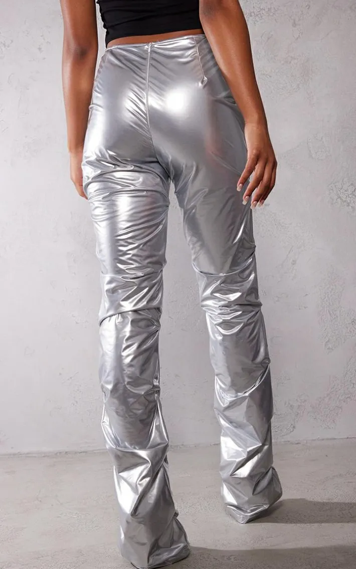 These bottoms are just what you need to take your outfit of the day to a whole new level. Featuring a silver vinyl material with a high waist, ruched detailing and a flared leg, we’re in love. Wear with a black crop top, your trusty high heels and shoulder bag for a look that is sure to turn heads for all the right reasons