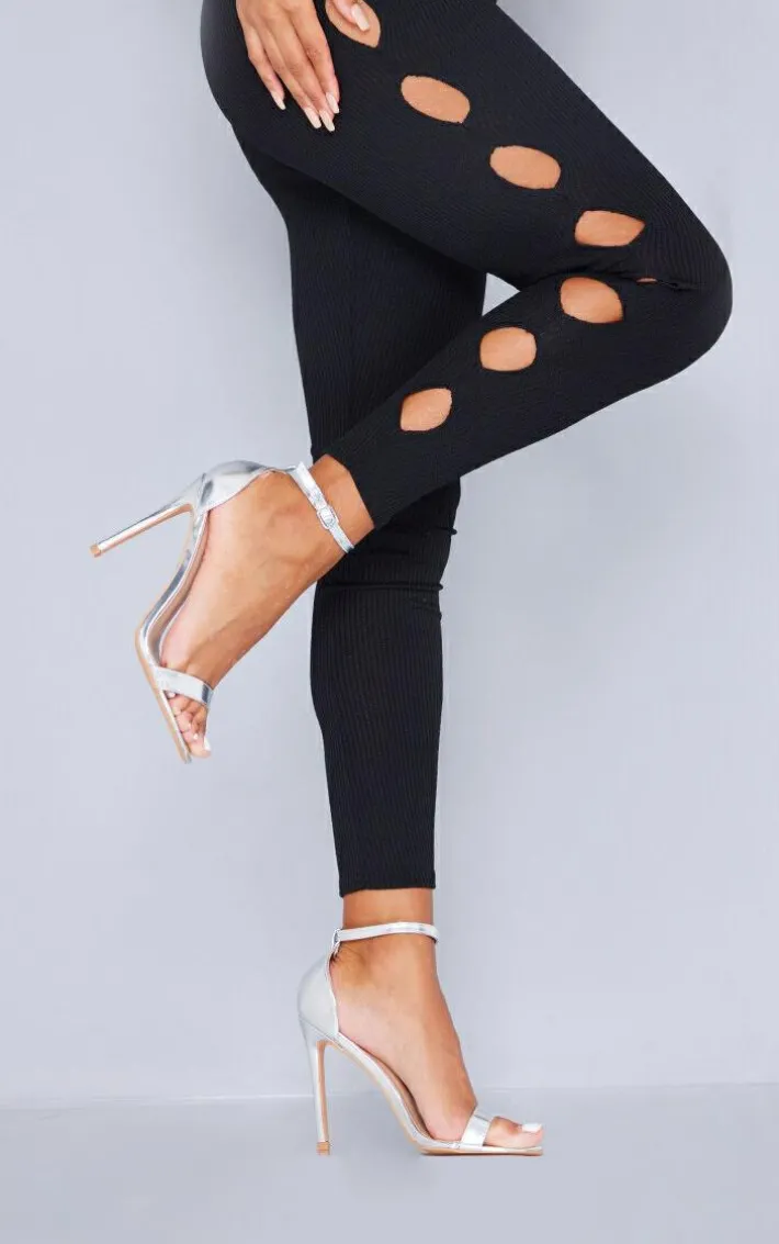 These metallic heels are perfect for giving any look a luxe touch. Featuring a faux leather silver material, a simple two-strap design and a stiletto heel, this style can be worn with anything.