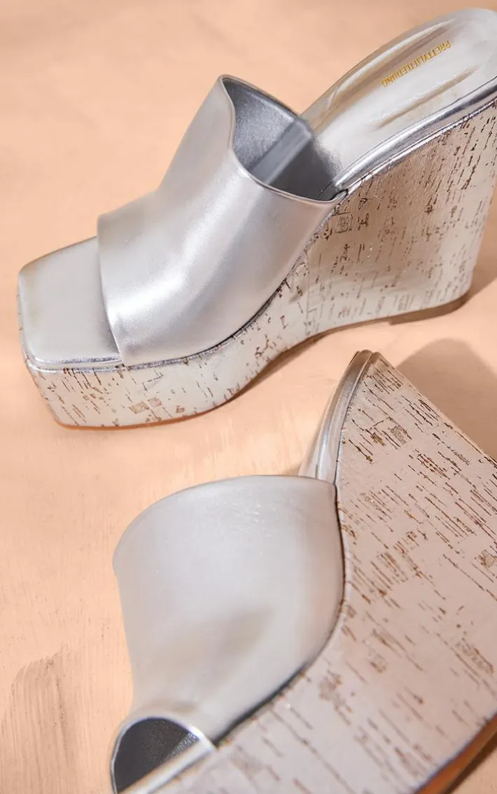 Make the ultimate statement with these silver wide fit heeled wedge mule sandals. Brought to you in a silver material with a wide fit and a heeled wedge design, you won’t be able to resist. When the weekend calls, so do these mule sandals. Team with your fave accessories and your go-to outfit for a look like no other.
