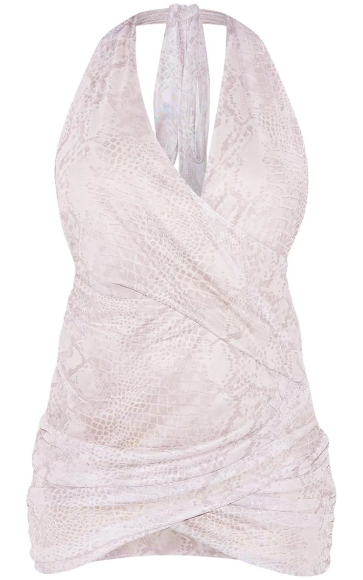 Inject some fierce animal prints into your weekend wardrobe with this snake print extreme cut out halter neck wrap bodycon dress. Brought to you in a snake print material with a halterneck design, extreme cut out detailing for that extra touch of drama and a flattering wrap bodycon fit, how can you go wrong? Style this bodycon dress with black chunky boots and gold accessories to instantly elevate the look.