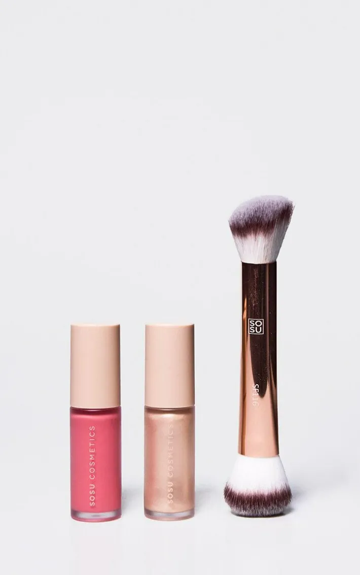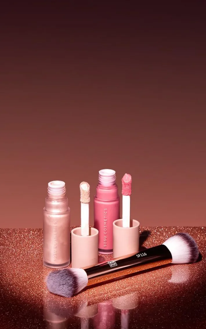 Featuring the Liquid Blush in shade Pink Pop, the brand NEW and exclusive Liquid Highlighter in shade Spotlight and the SF116 Brush.