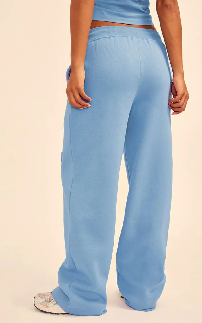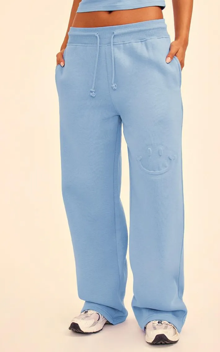 Amp up your off-duty wardrobe with these steel blue smile embossed wide leg sweatpants. Brought to you in a steel blue hue material with a smile embossed design and wide leg fit, these sweatpants are at the top of our wish list. Style with the matching top, your fave hoodie and fresh kicks for a chic sweatpant set we can’t get enough of.