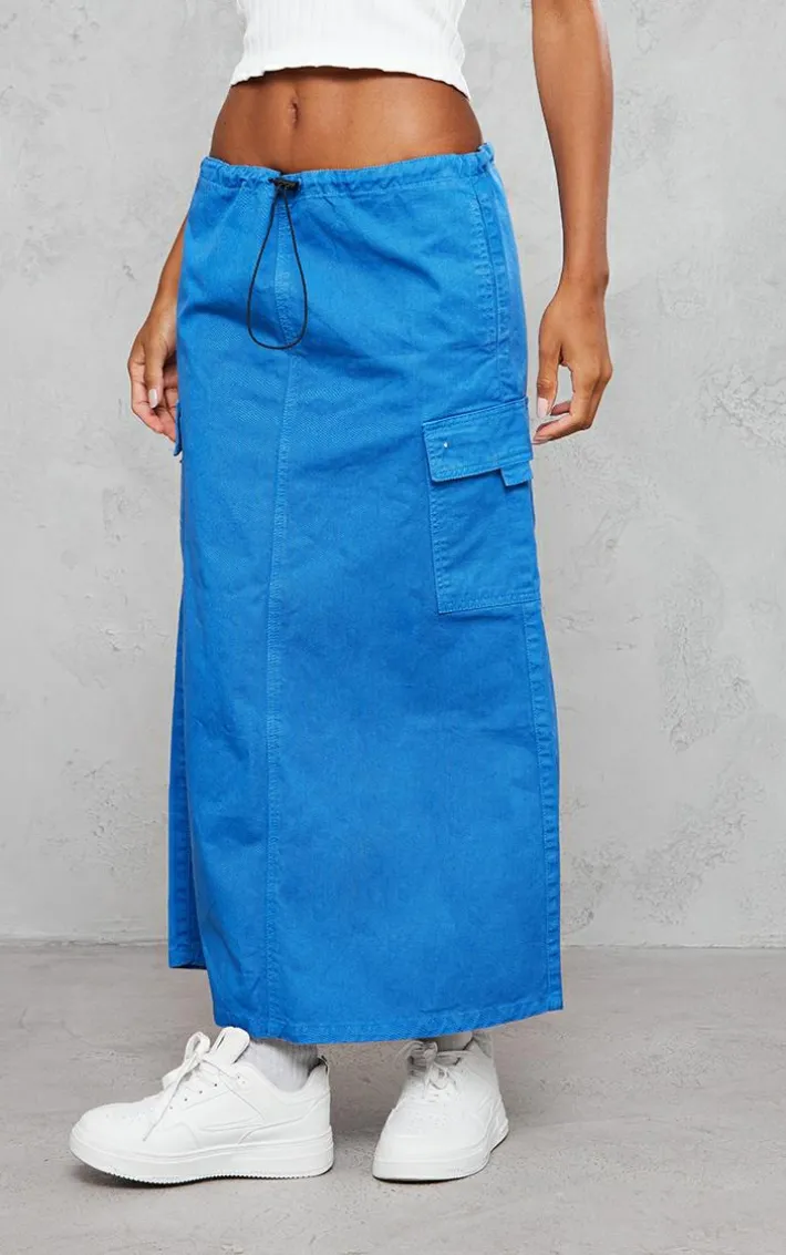 Get ready to nail new season trends with this steel blue twill toggle washed midaxi skirt. In a statement steel blue twill material and with an on-trend ttoggle design, this midaxi skirt will have you earning some serious style points all season long. Keep your off-duty vibe on point and Style this steel blue skirt with a white bandeau top and fresh kicks for a fierce everyday look like no other.