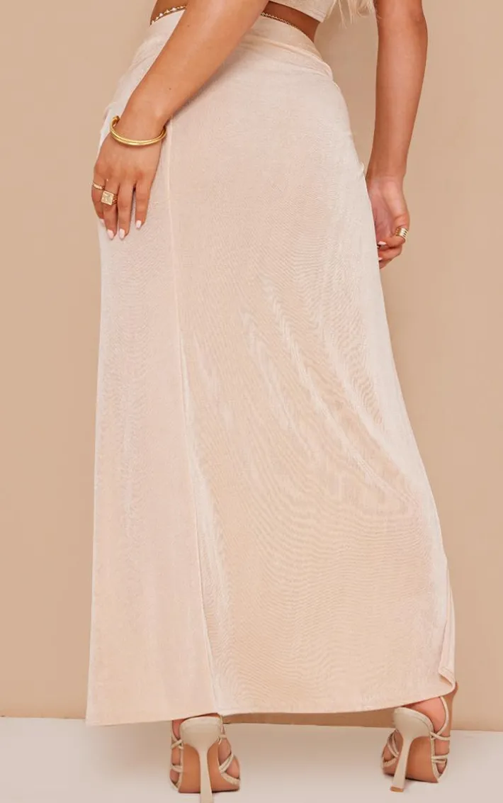 Amp up your weekend wardrobe with this must-have skirt. Featuring a stone slinky material with a ruched knot side design and a midaxi length, what’s not to love? Style with the matching top, mules and statement accessories to complete the look we’re obsessing over.
