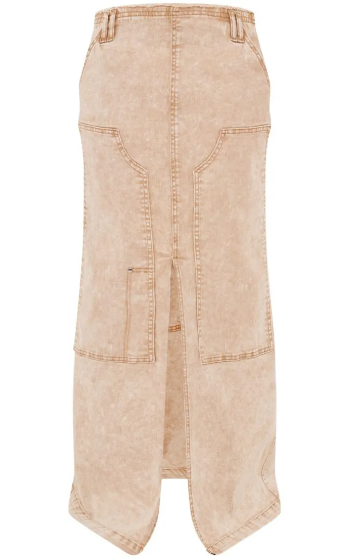Give your new season wardrobe the ultimate chic upgrade with this stone acid wash twill raw hem maxi skirt, you won’t be able to resist. This skirt is brought to you in a stone acid wash twill material with raw hem detailing and a relaxed fit, it is perfect for dressing up or down. Pair with a basic top, a faux leather jacket and heeled boots for a fierce finish.