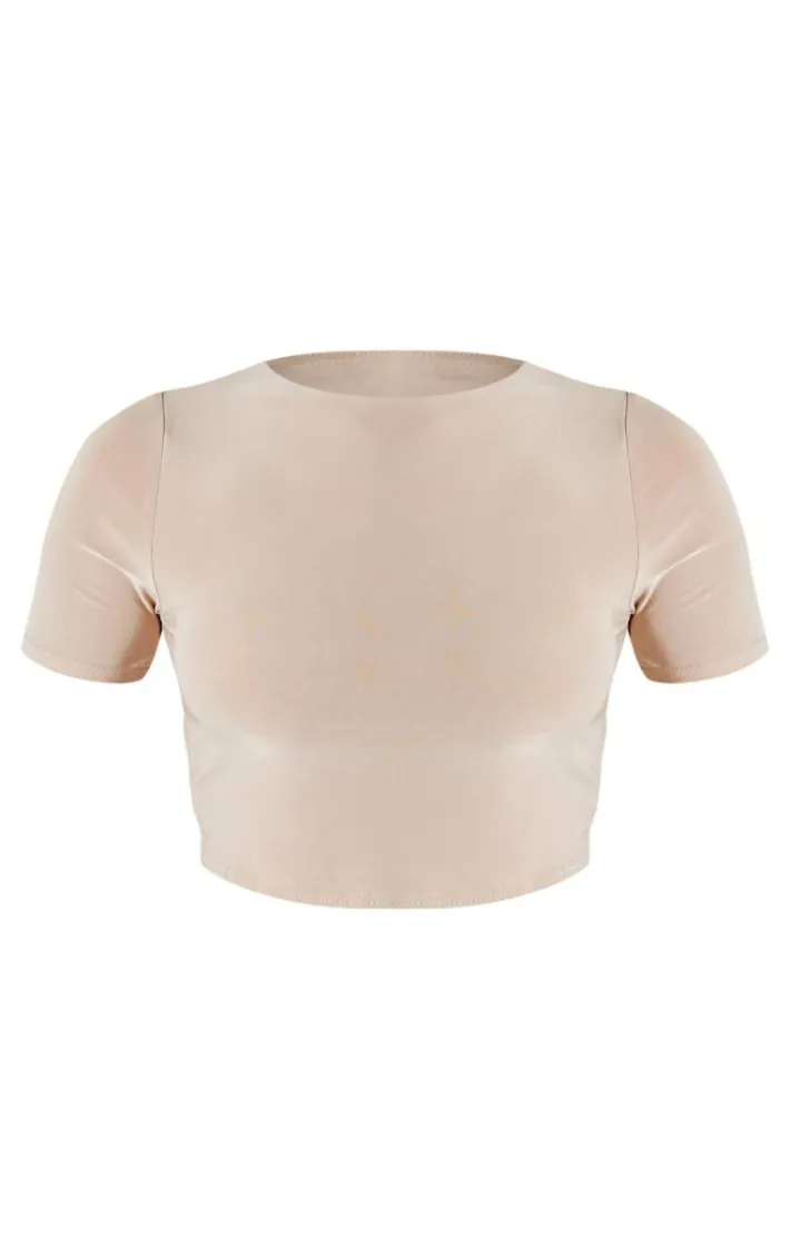 Level up your basics collection with this stone basic slinky short sleeve crop top. This crop top is brought to you in a stone slinky material with short sleeves, a cropped length and a basic style, how could you turn this down? This crop top with it’s basic style is here to banish any of your what-to-wear dilemmas. Pair with cargos, high heels and accessories to finish off the look.