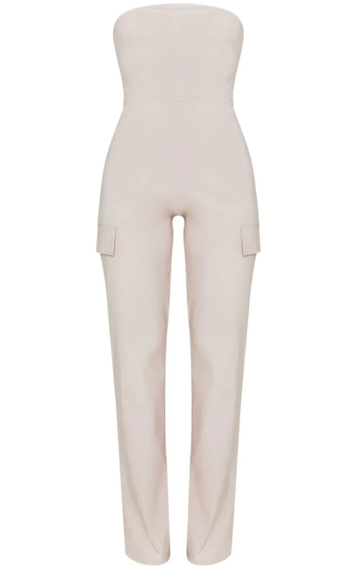 This stone cargo style corset bandeau jumpsuit is here to solve all of your weekend wardrobe dilemmas. Brought to you in a stone hue material with a flattering corset fit, a bandeau neckline and a cargo style that we just can’t get enough of right now, you really can’t go wrong. Style this cargo jumpsuit with clear strap heels and some glam accessories for a weekend-worthy look to be remembered.