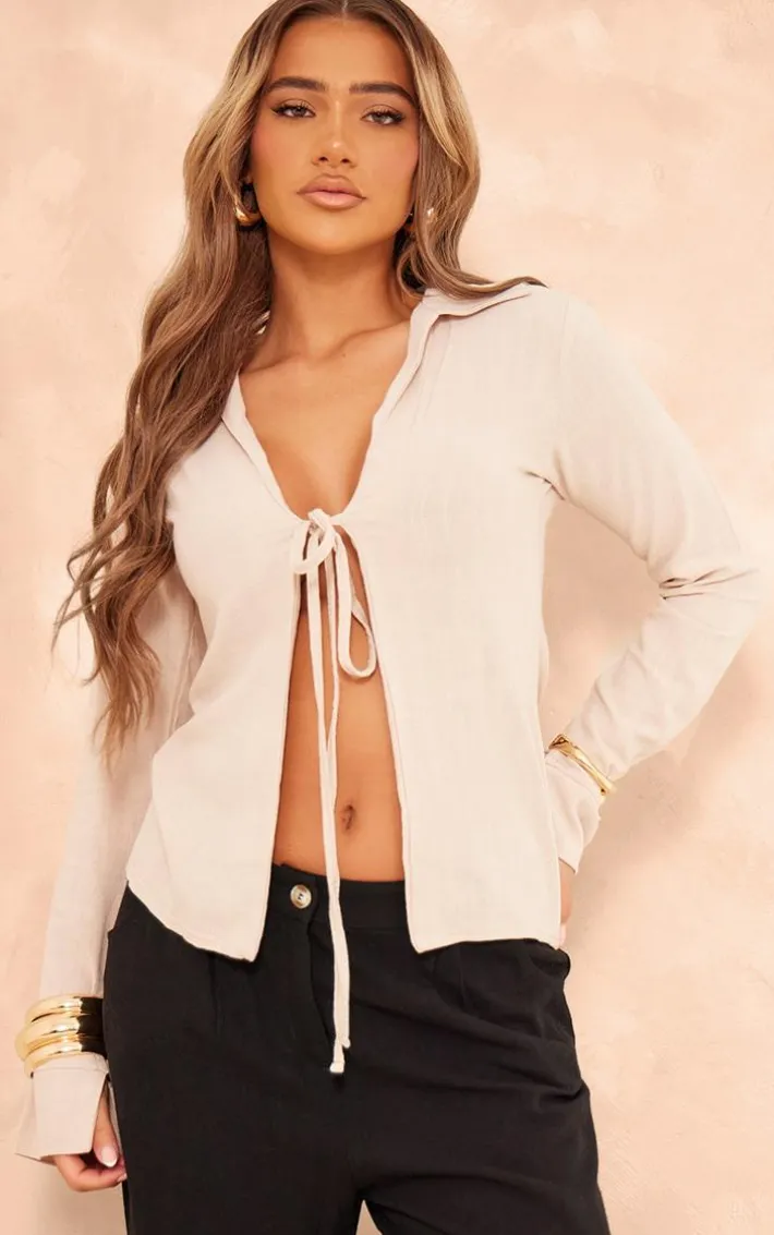 Keep it chic with this stone cheesecloth tie front long sleeve shirt. Brought to you in a stone cheesecloth material with a tie front, we are obsessed. This long sleeve shirt is all you need for those day to night look and beyond. Simply style with your fave accessories and pair of trusty jeans for a fool proof finish.