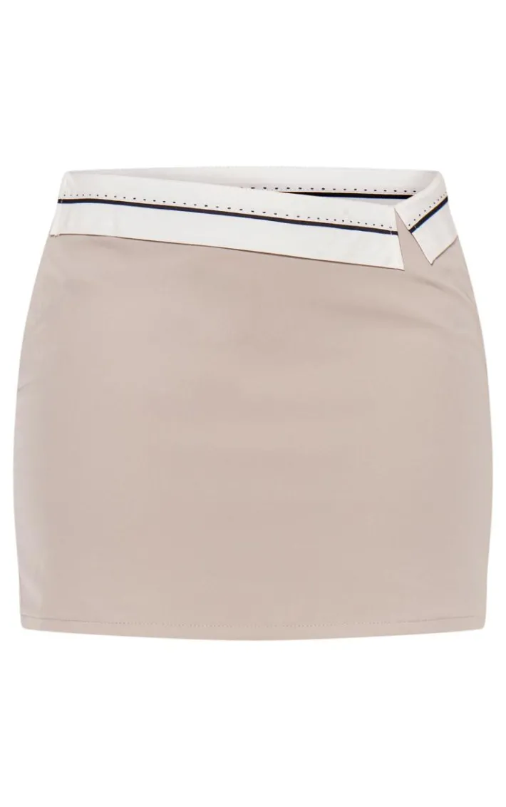 Hit refresh on your weekend wardrobe with this stone contrast foldover panel mini skirt. Brought to you in a stone hue material with a contrast foldover panel detail, this mini skirt is a must have. How can you resist? Style with the matching top, white heels and gold accessories for a look that won’t miss.