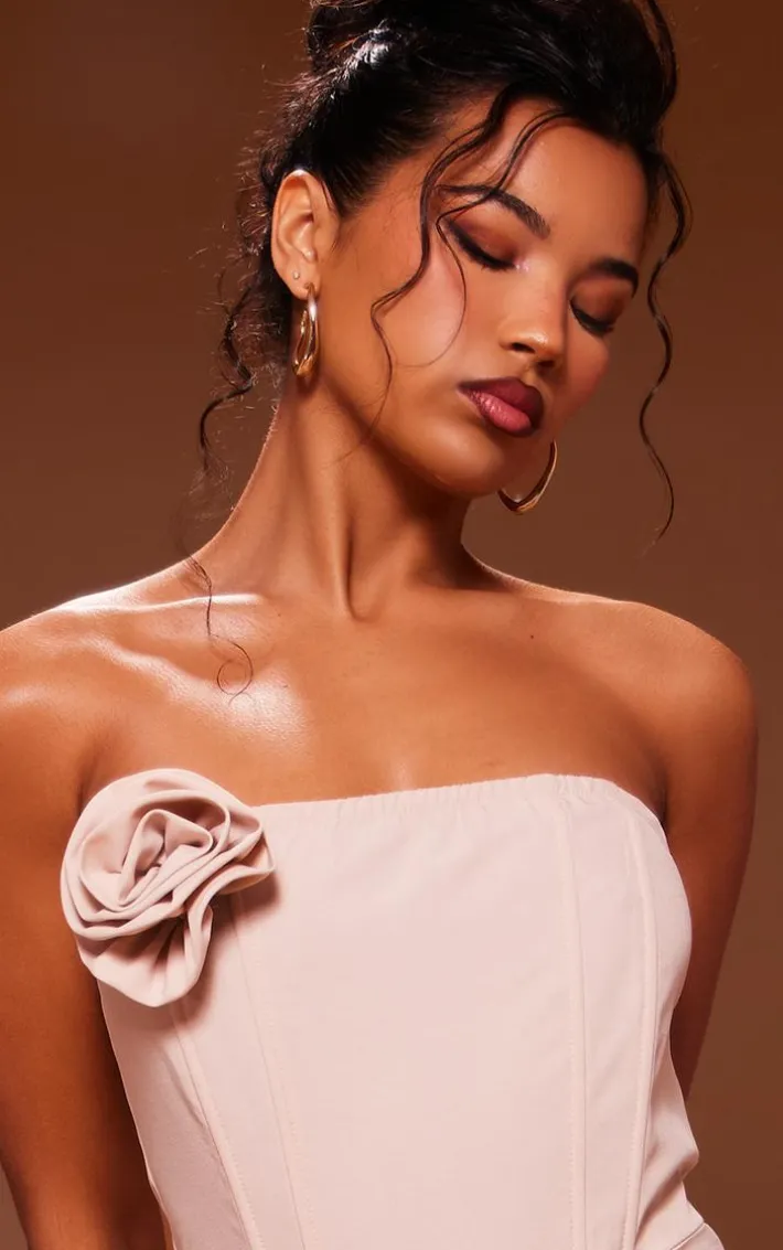 This stone corsage detail bandeau corset wide leg jumpsuit is here to solve all of your ‘what to wear’ dilemmas. Brought to you in a stone hue material with a bandeau neckline, a flattering corset fit and corsage detailing for that extra touch of glam, how can you not fall in love? Style this wide leg jumpsuit with your highest heels and luxe accessories for a look that is sure to make heads turn wherever you go.
