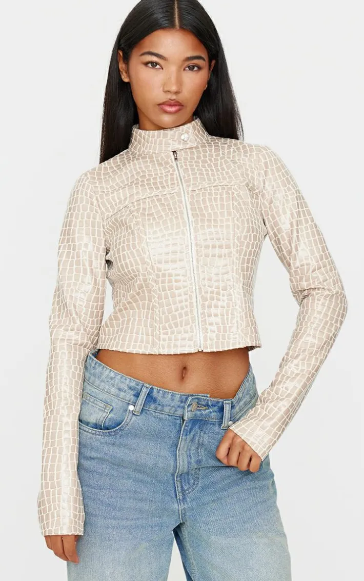 We’re loving this stone faux leather croc fitted jacket for a weekend worthy look. Brought to you in a dreamy stone shade, with a luxe faux leather material and croc design, you really can’t go wrong. The fitted feature will have your figure looking snatched, so style with a pair of wide leg jeans and nude heels for a look that will turn heads for the right reasons.