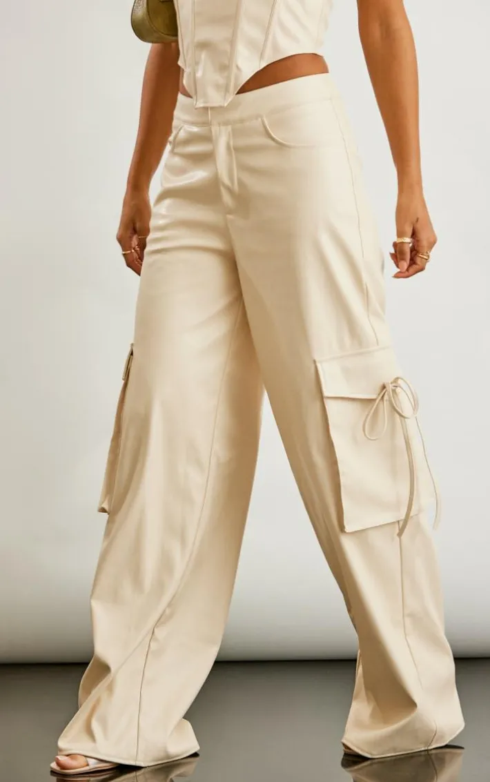 Hit refresh on your new season wardrobe with these stone faux leather wide leg cargo pants. They feature a stone hue faux leather material with a wide leg fit and a cargo style. Just add the matching top and slip-on heels for an effortlessly chic finish.