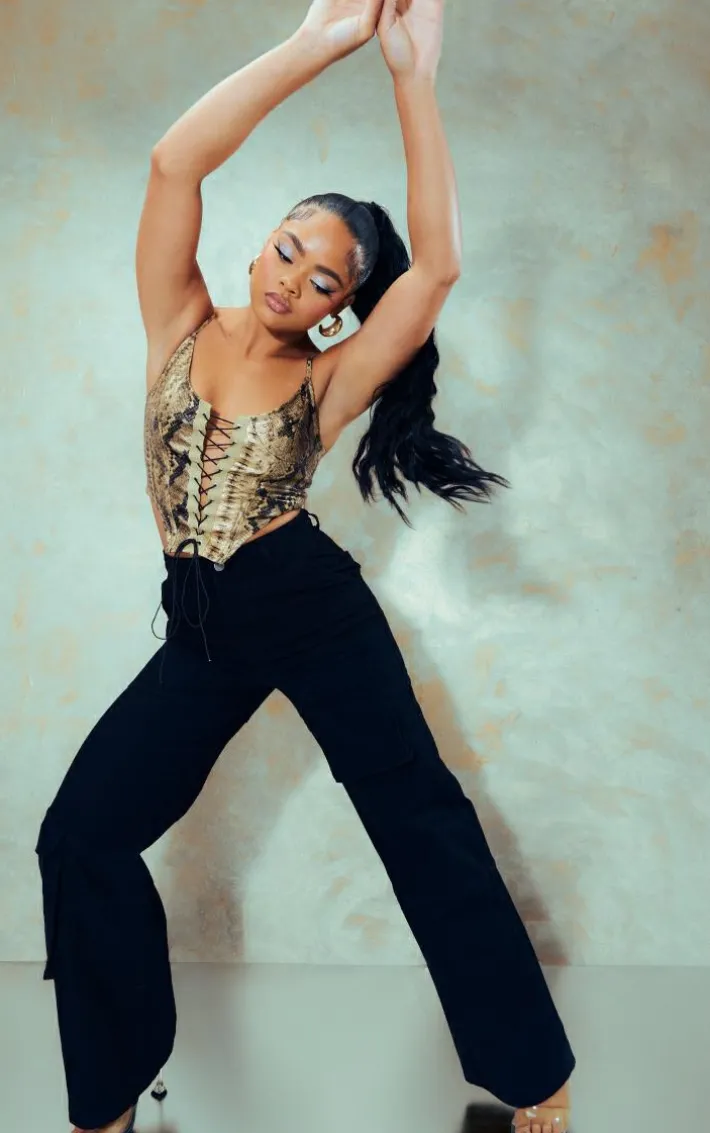 This stone faux snake Pu lace up corset will have hearts racing for all the right reasons. Brought to you in a stone Pu material for a little extra edge, and a snake design that will have you setting trends wherever you step foot. With a lace up detail, this corset will be your new go-to for those ‘jeans and a nice top’ combo’s. Team with some of your fave accessories and a pair of your go-to heels to complete the look we are loving.