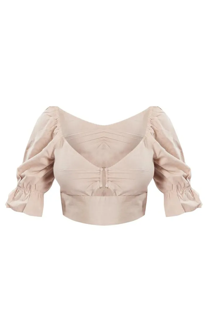 Add some chic vibes into your new season wardrobe with this stone linen look bar detail puff sleeve crop top. This top is brought to you in a stone linen look material with bar detailing, puff sleeves and a cropped length, what’s not to love? This crop top is the perfect styling staple for your AM to PM styling. Wear with denim jeans, box-fresh kicks and accessories for a look that will have you hitting the streets in style.