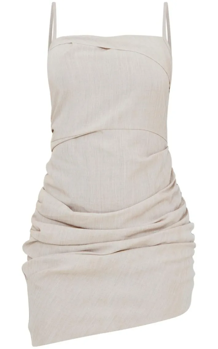 Look all kinds of glam in this stone linen look fold-over ruched bodycon dress. This dress is perfect for those plans. With a stone linen material and a fold over design, this dress is at the top of our new season wish list. Team with some slip on clear heels and a statement shoulder bag to complete the look everyone will be obsessing over.