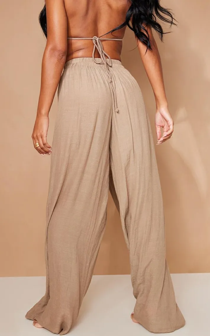Take your beach look the extra mile with these bottoms. Featuring a stone linen-look material with a palazzo design and flattering fit, we are in love. Wear with your fave bikini set to finish the look.