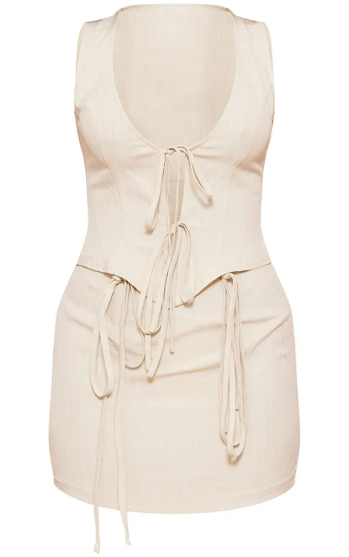 Create a look no one will forget with this stone linen look tie bodycon dress. Brought to you in a stone linen look material with a tie design and a figure-hugging fit, this bodycon dress will have you standing out from the rest. Style with high heels accessories for a combo we can’tstop crushing on.
