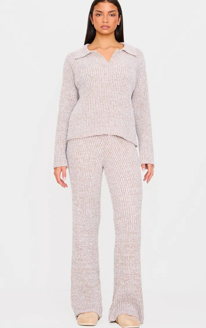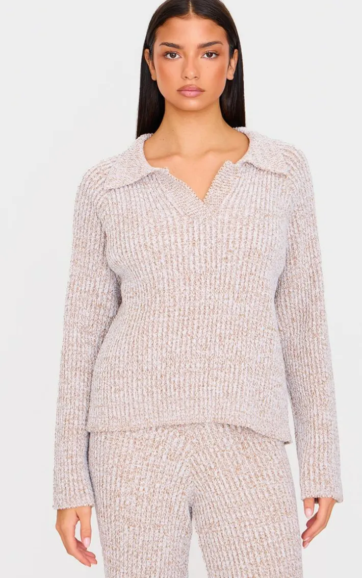We can’t get enough of this stone marl knitted V neck oversized sweater for the season ahead. Brought to you in a neutral stone shade marl, with a cosy knitted material and V neck design, what’s not to love? The oversized fit has never looked better, so team with the matching bottoms and simple accessories for a look like no other.