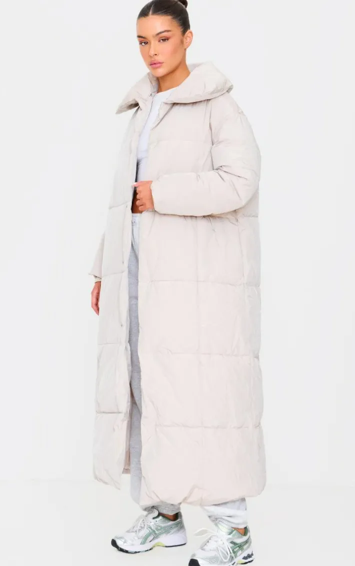 Take on the A/W season in style with this stone oversized square quilted maxi puffer coat. This puffer coat is brought to you in a stone quilted material with an oversized fit and a maxi length, what’s not to love? With it’s tie waist this coat is sure to be your new go-to. Layer over your outfit of the day with a pair of chunky boots for a vibe like no other.