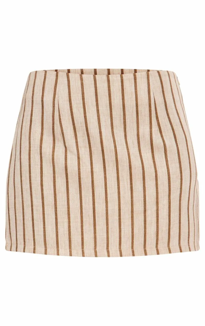 Give your new season wardrobe the luxe upgrade it deserves with this stone premium stripe linen look micro mini skirt, you won’t be able to resist. This skirt features a stone hue linen look material with a stripe print and a micro mini length. Simply add a halterneck top, sandals and oversized sunglasses for a look everyone will be asking about.