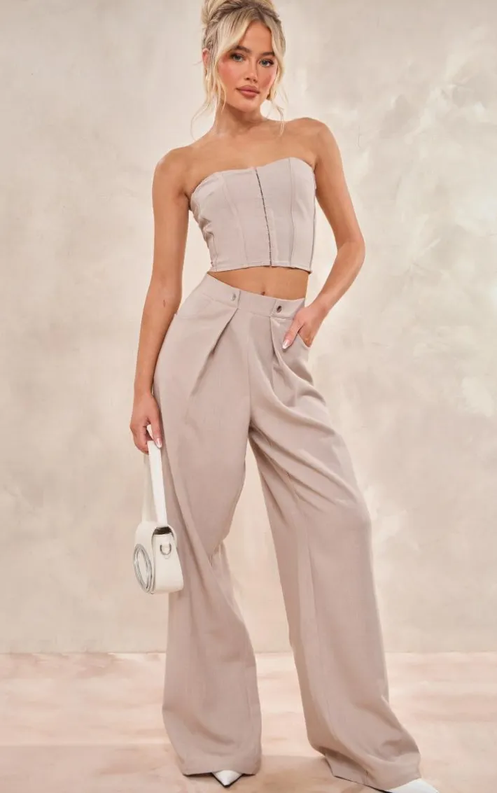 Get ready for your weekend plans with this stone premium woven hook and eye detail bandeau corset. Brought to you in a stone woven material with a hook and eye design and a bandeau style, this corset is perfect for your next date night and beyond. Style with the matching pants, heels and your fave accessories for a combo we’re crushing on.