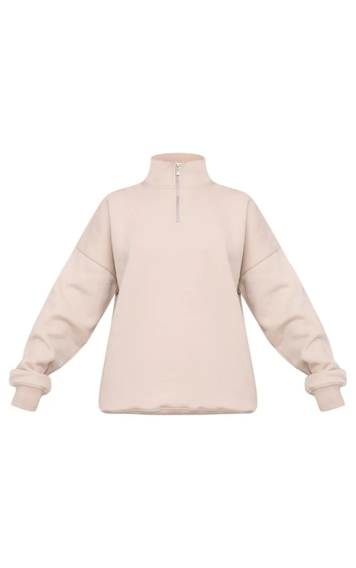 Amp up your off duty wardrobe with this stone quarter zip back print oversized Sweatshirt. Brought to you in a stone hue material with a quarter zip fastening and back print detail, this oversized Sweatshirt is calling your name. Style with the matching sweatpants, fresh kicks and a statement cap for a casual vibe we’re loving.